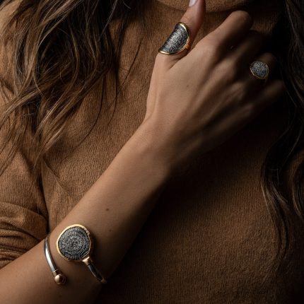 Phaistos Disc Hinge Bracelet – 14K Gold and 925 Sterling Silver