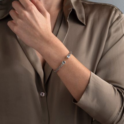 Greca Bangle Bracelet with Blue Opal stone – 925 Sterling Silver