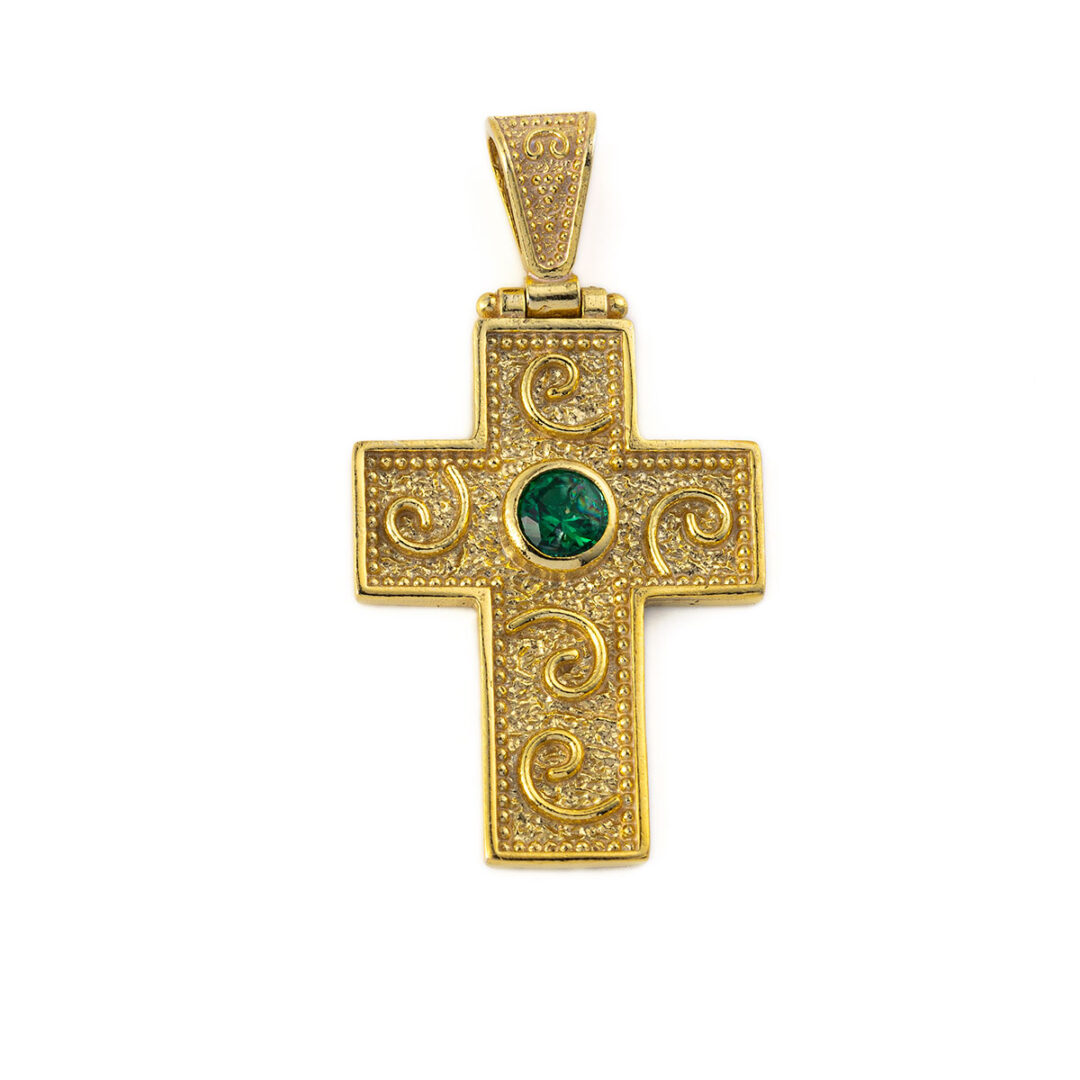 Σταυρός Βυζαντινός με Ζιργκόν – Ασήμι 925 Επιχρυσωμένο