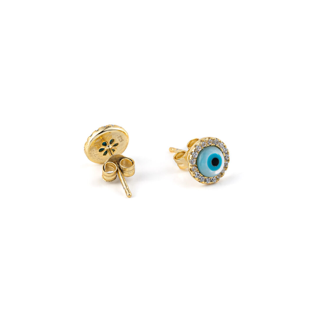 Ασημένια 925 σκουλαρίκια επιχρυσωμένα Ματάκι με ζίργκον 35,00