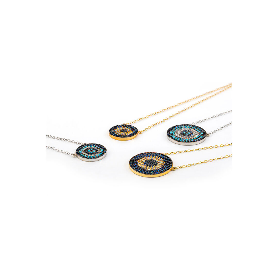 Κολιέ μάτι από ασήμι 925 διακοσμημένο με τυρκουάζ και ζιργκόν.