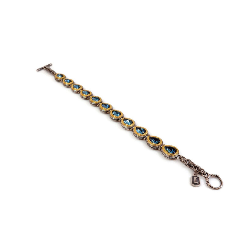 Βραχιόλι Cuff Βυζαντινό με Απατίτη - Ασήμι 925 Επιχρυσωμένο