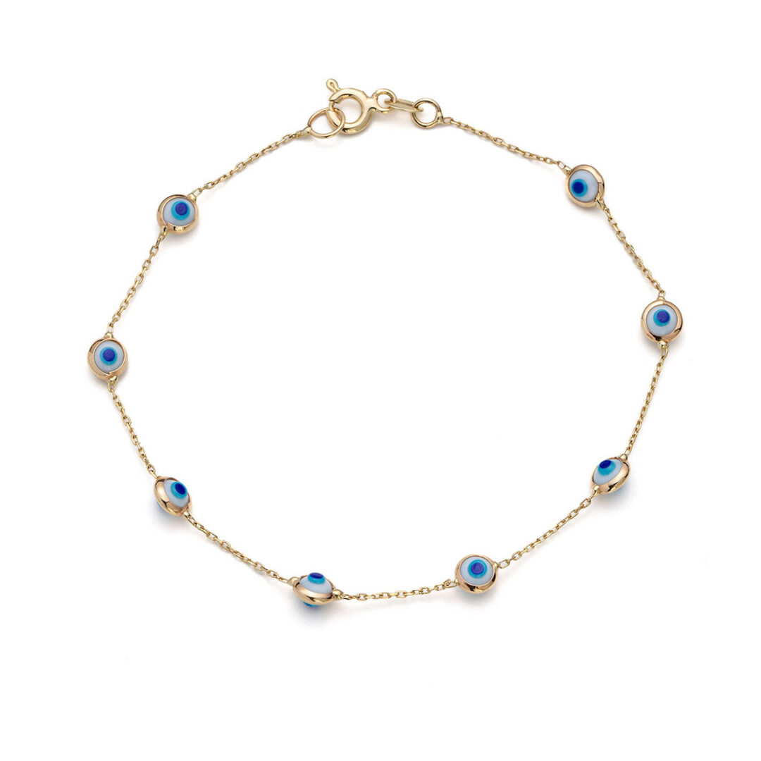Βραχιόλι με Λευκά Μάτια – Χρυσό 14Κ