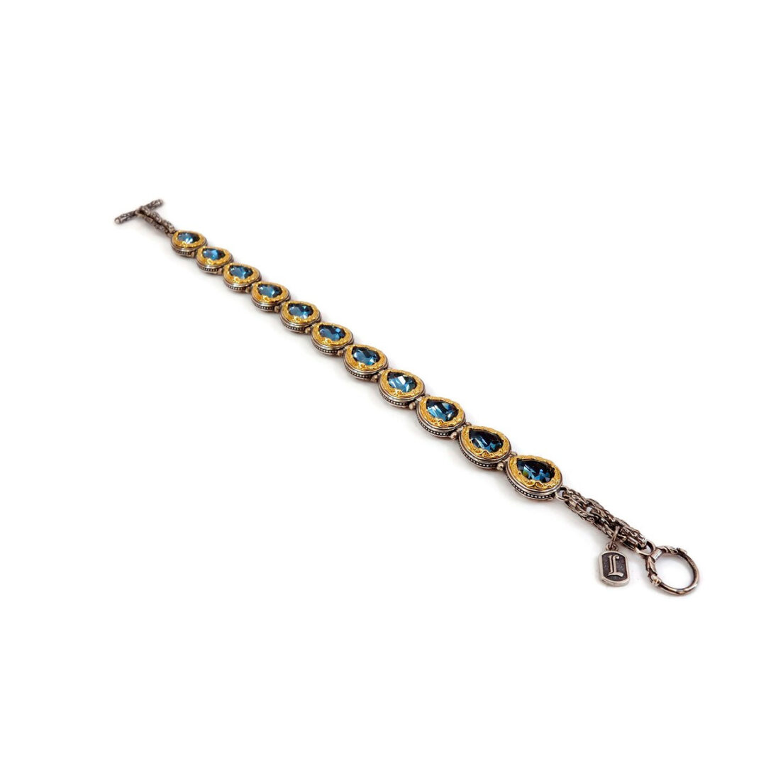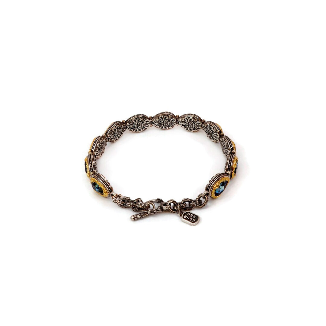 Βυζαντινό Βραχιόλι με Μπλε Τοπάζι και Swarovski – Ασήμι 925 Επιχρυσωμένο