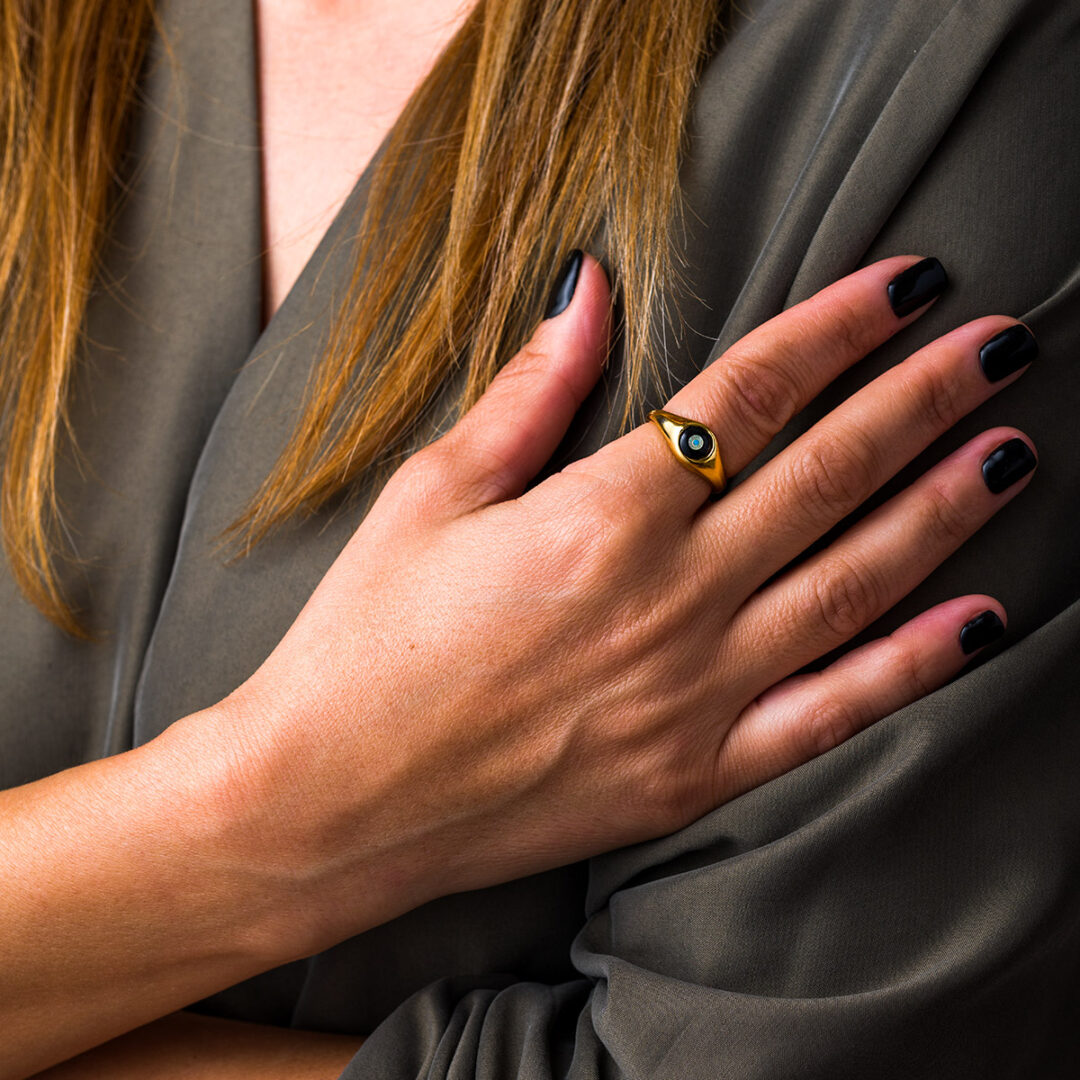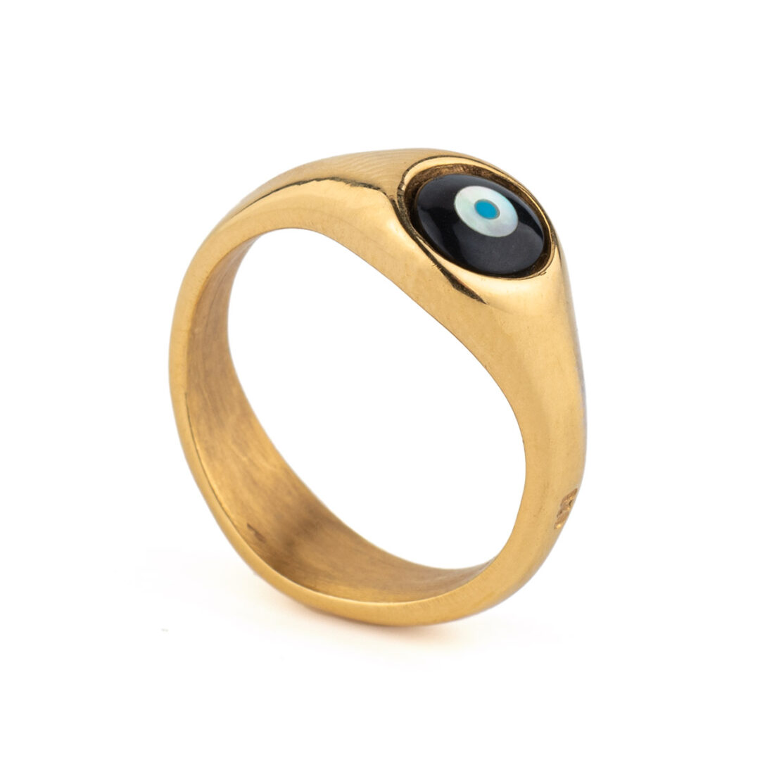 Δαχτυλίδι Μάτι Fildisi Onyx – Ασήμι 925 Επιχρυσωμένο