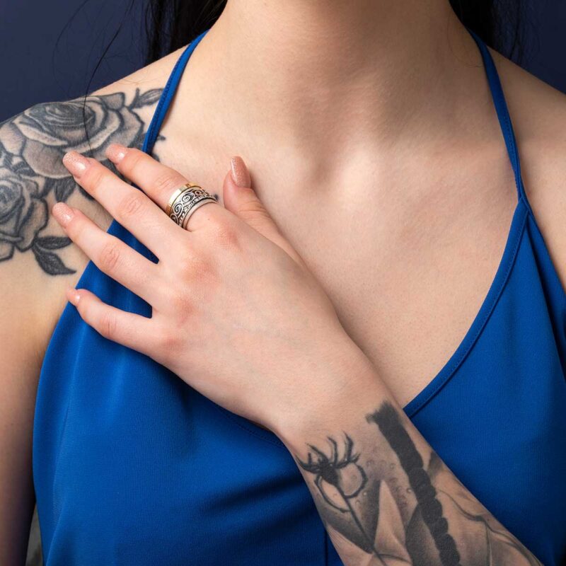 Δαχτυλίδι Spinner με Μπλε Σπείρες – Χρυσό 14Κ και Ασήμι 925