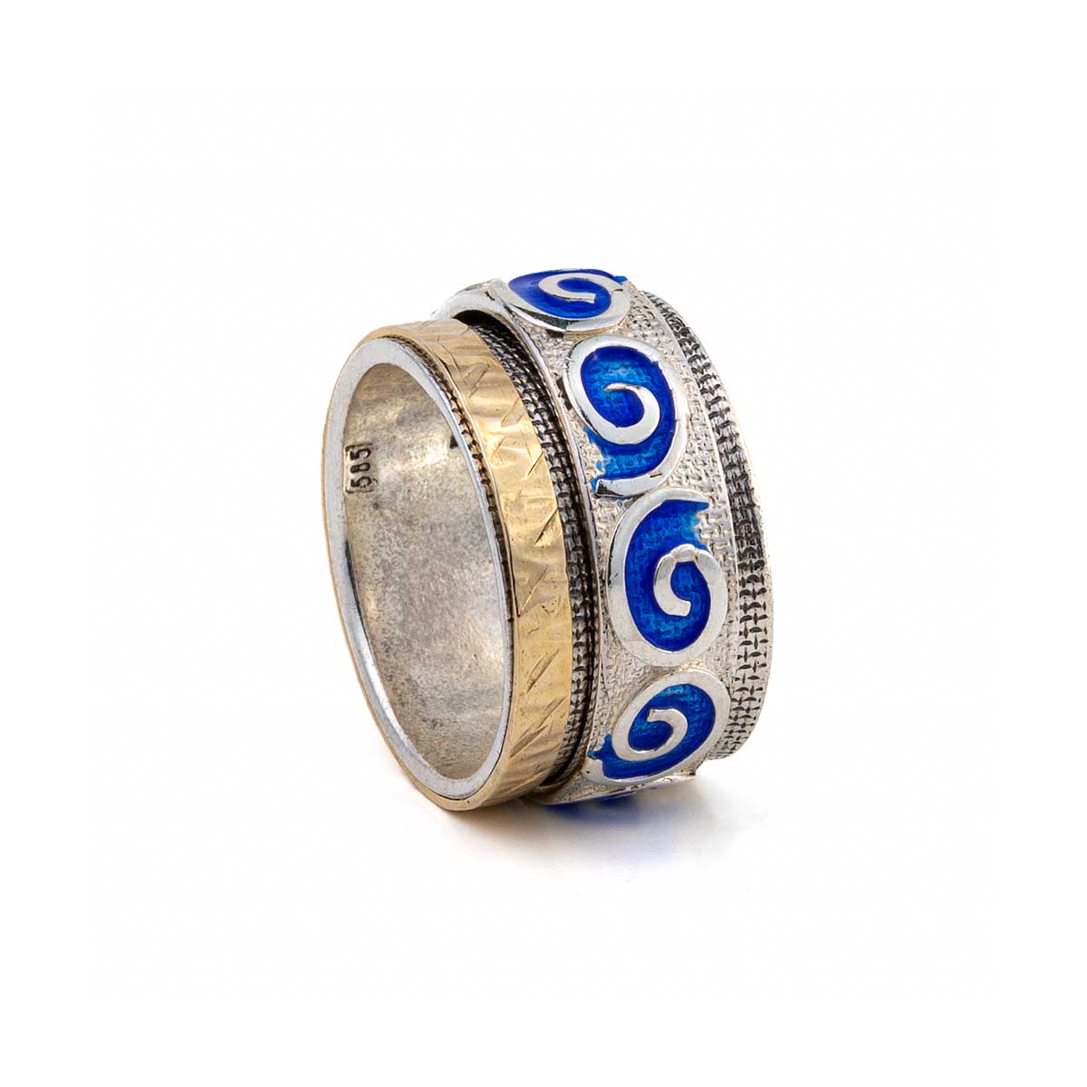 Δαχτυλίδι Spinner με Μπλε Σπείρες – Χρυσό 14Κ και Ασήμι 925