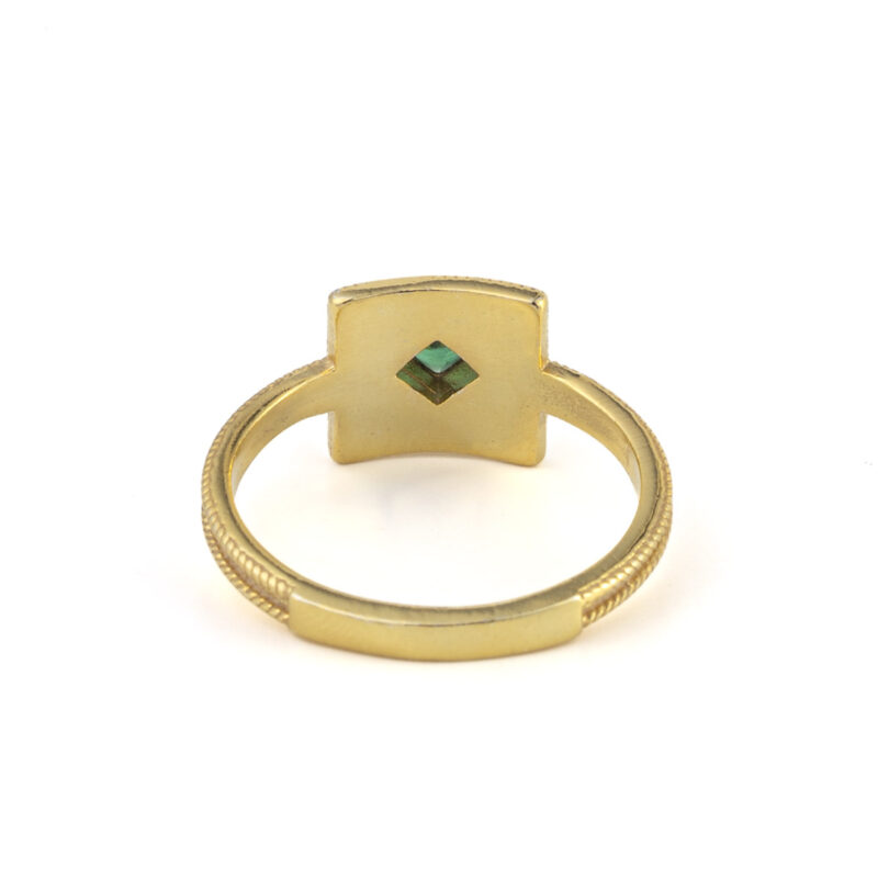 Byzantine Ring with Green Turquoise Doublet Stone – 925 Sterling Silver Gold Plated