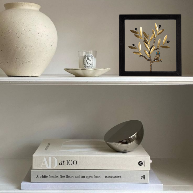 Ορειχάλκινα σχήματα σε ξύλινο πλαίσιο.