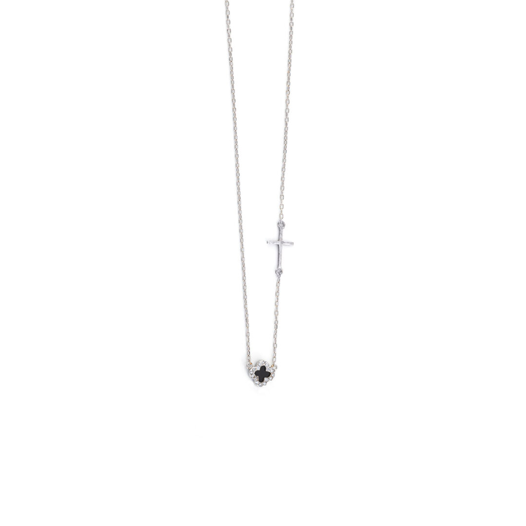 Κολιέ Σταυρος Μαύρος Όνυχας με Άσπρα Ζιργκόν – Χρυσό 14K