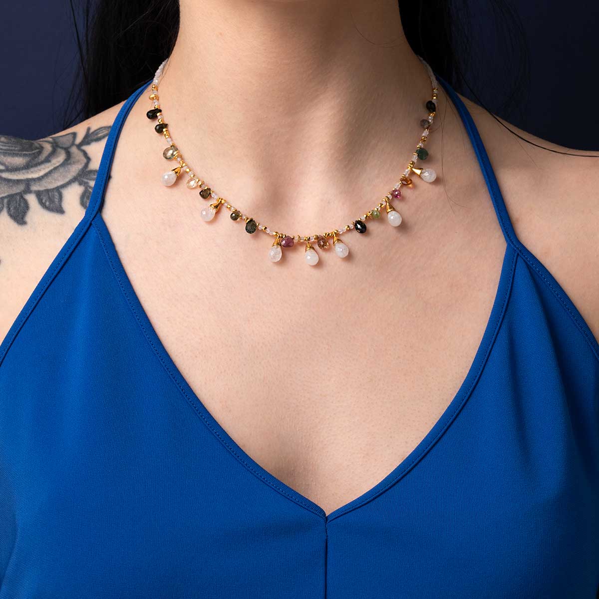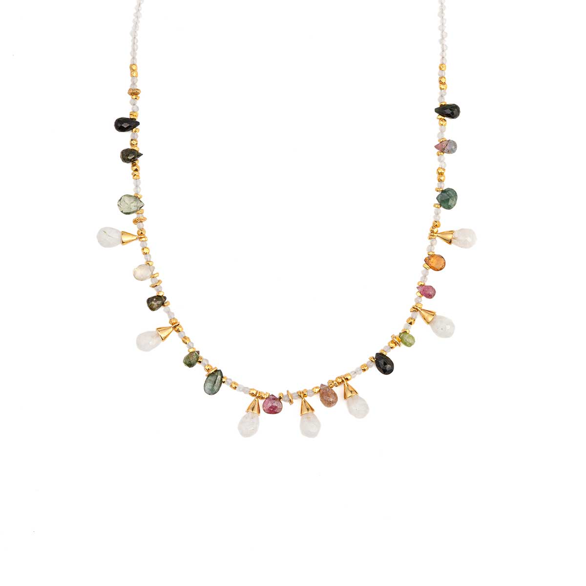 Κολιέ Moonstone και Tourmaline – Επιχρυσωμένο Ασήμι 925