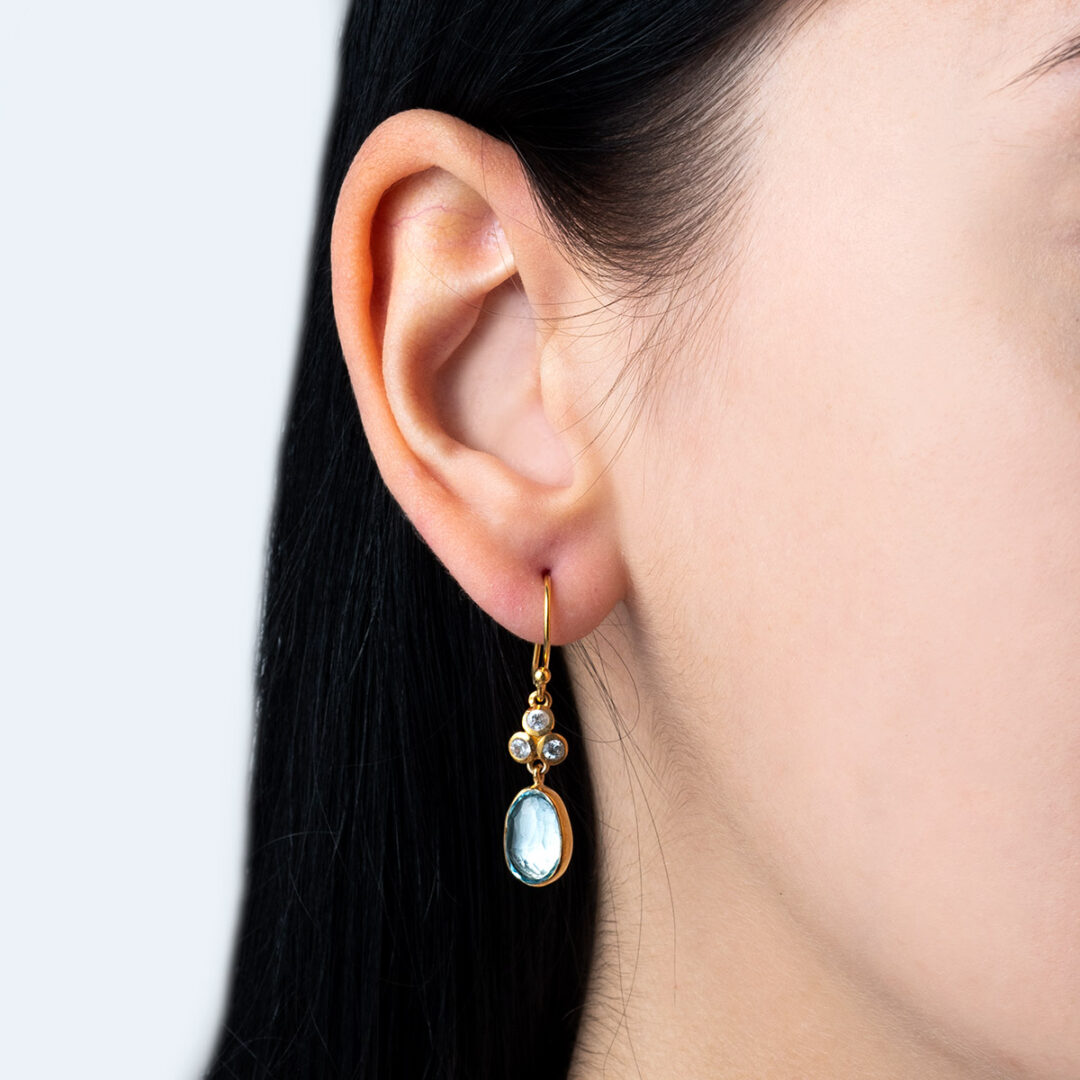 Κρεμαστά Σκουλαρίκια με Ακουαμαρίνα και Ζιργκόν – Ασήμι 925 και επιχρυσωμένα