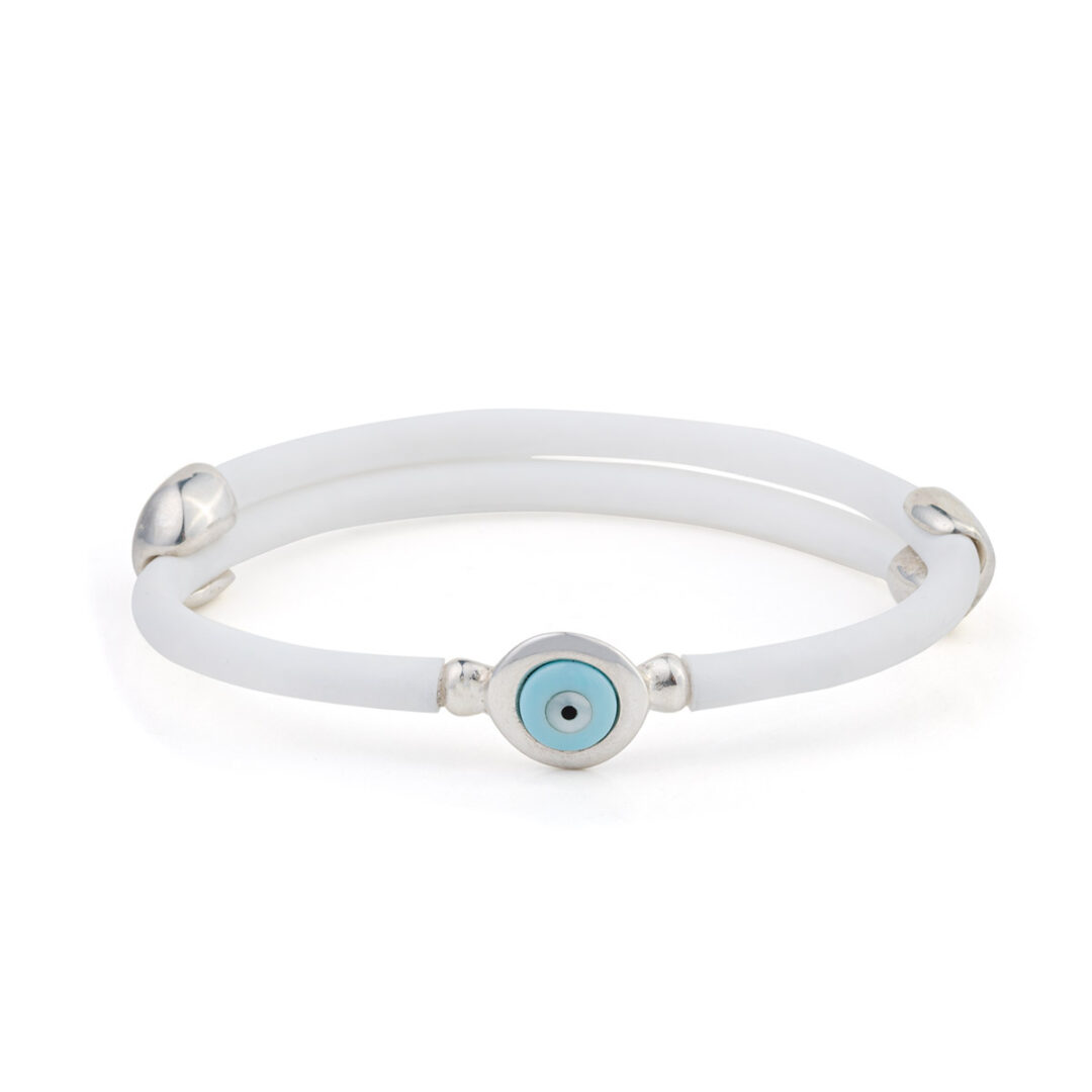 Λευκό Βραχιόλι Καουτσούκ με Στρογγυλό Ματάκι – Ασήμι 925