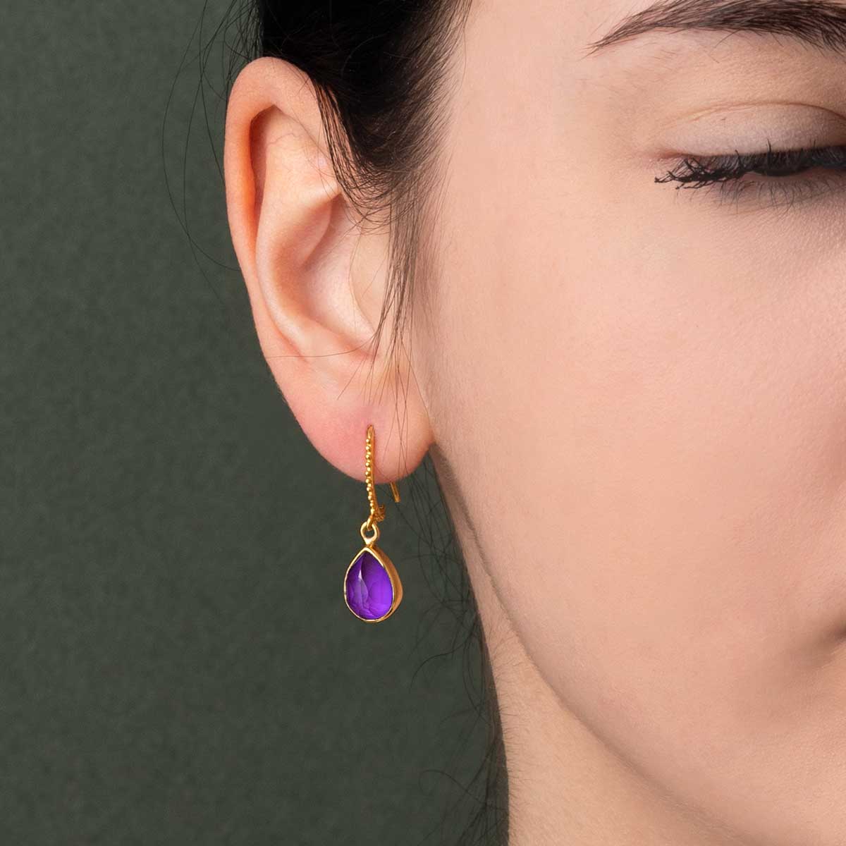 Σκουλαρίκια Αμέθυστος Σταγόνα – Επιχρυσωμένο Ασήμι 925