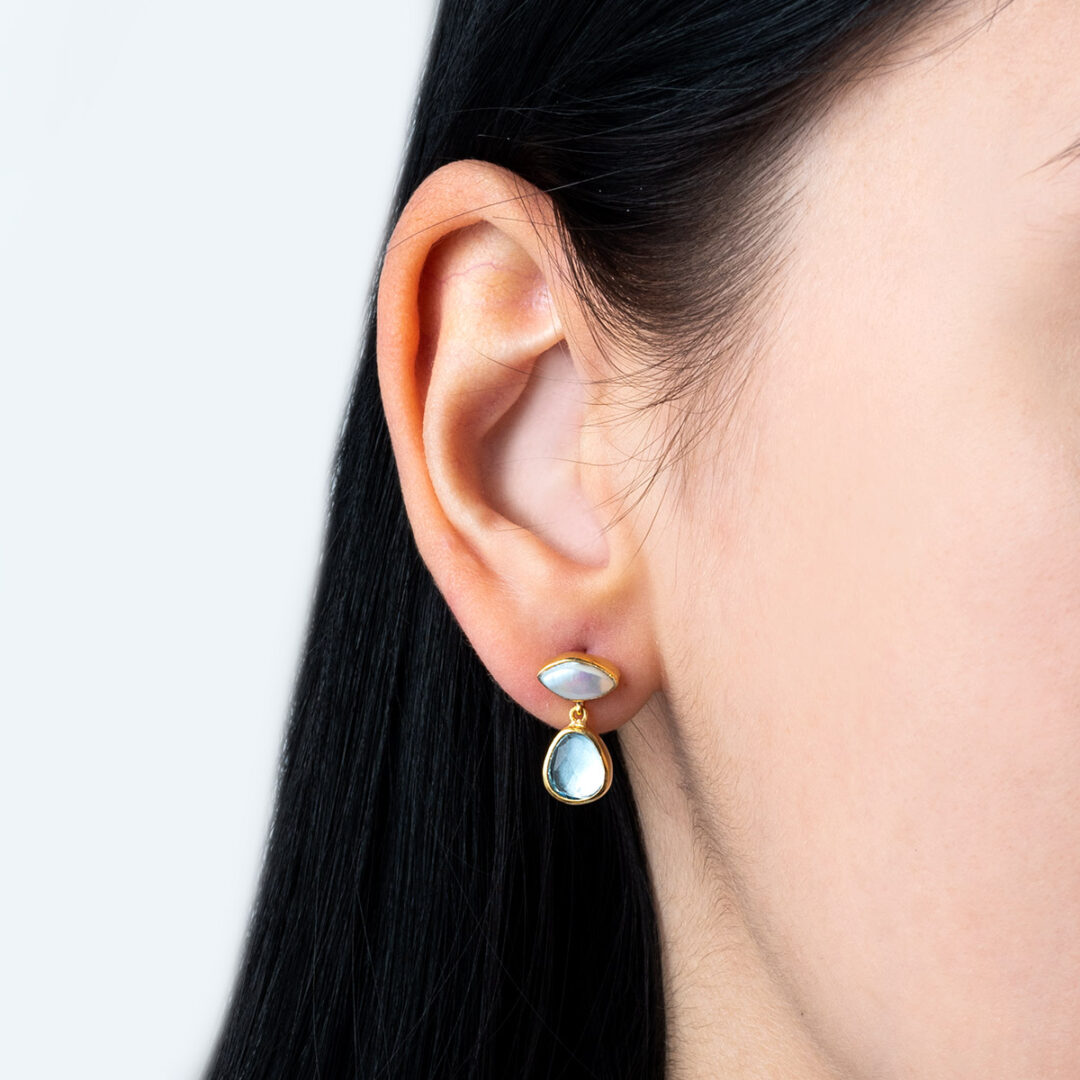 Σκουλαρίκια με Aquamarine και Μαργαριτάρι επιχρυσωμένα – Ασήμι 925