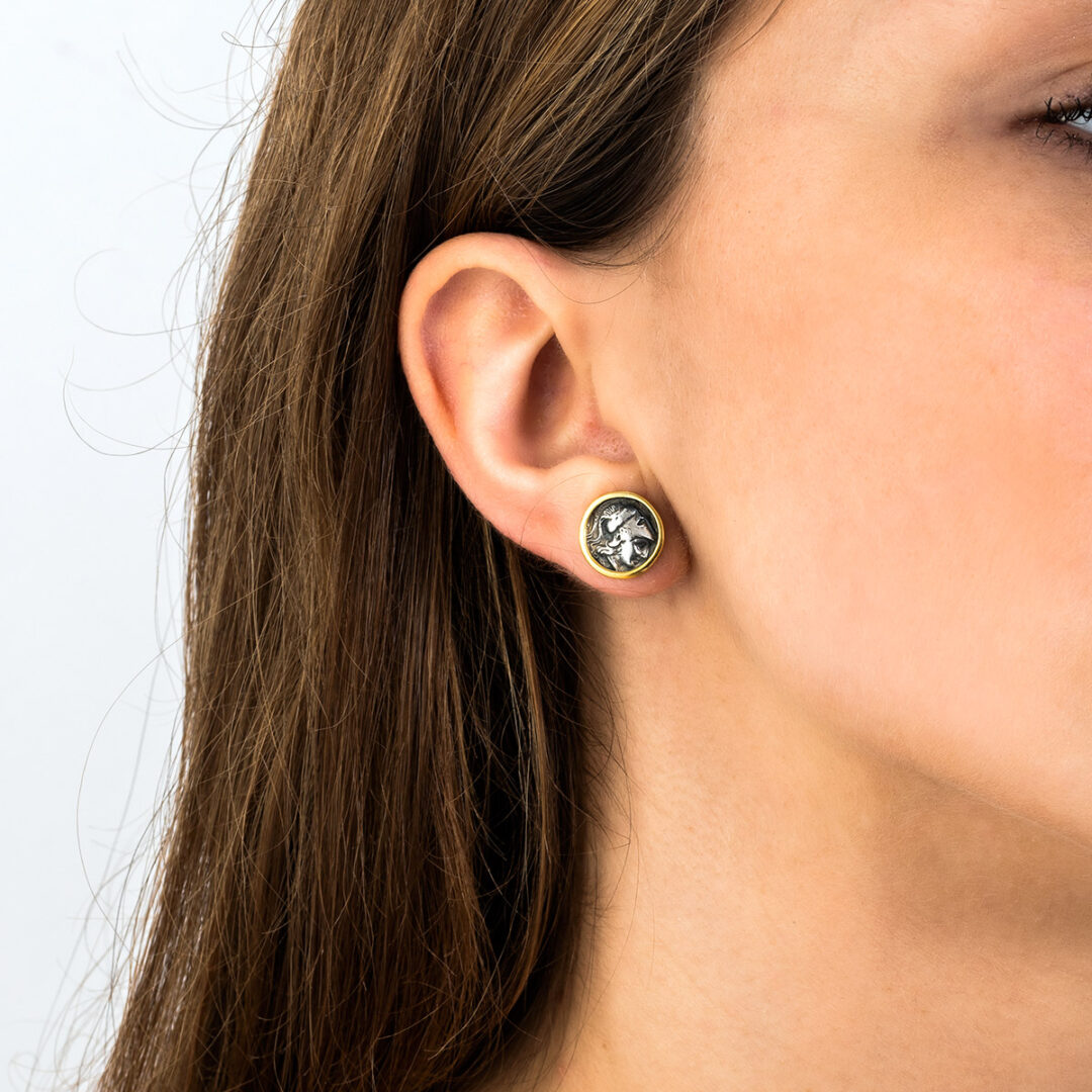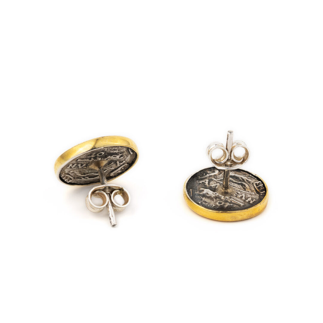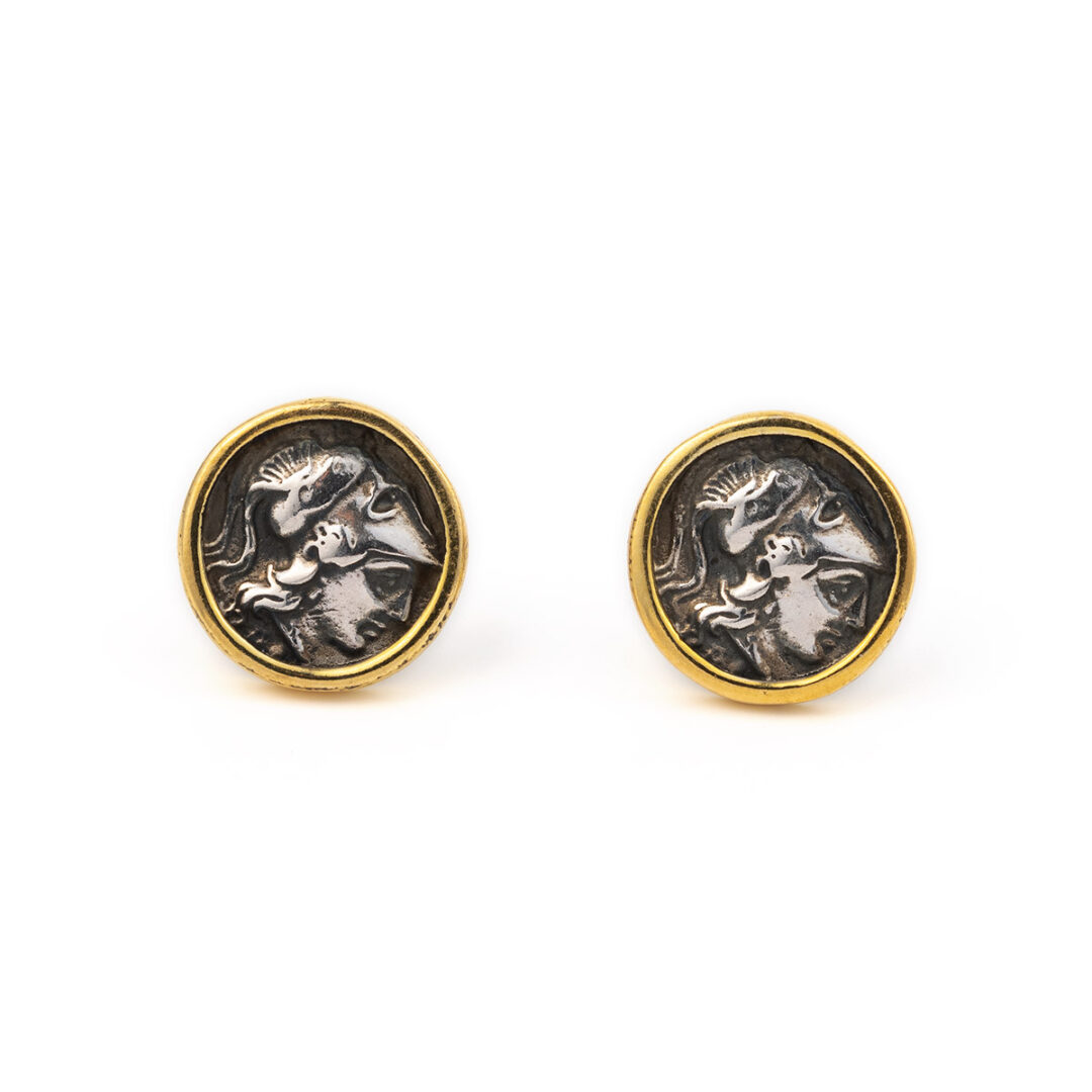 Καρφωτά Σκουλαρίκια με Νόμισμα Θεάς Αθηνάς – Ασημένιο και Επίχρυσωμένο Ασήμι 925