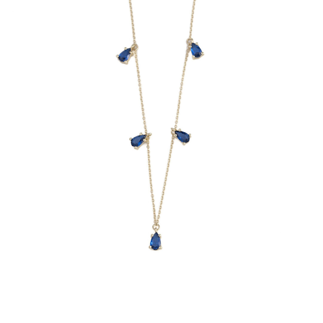 Κολιέ με Κρεμαστά Μπλε Ζιργκόν – Χρυσό 9Κ
