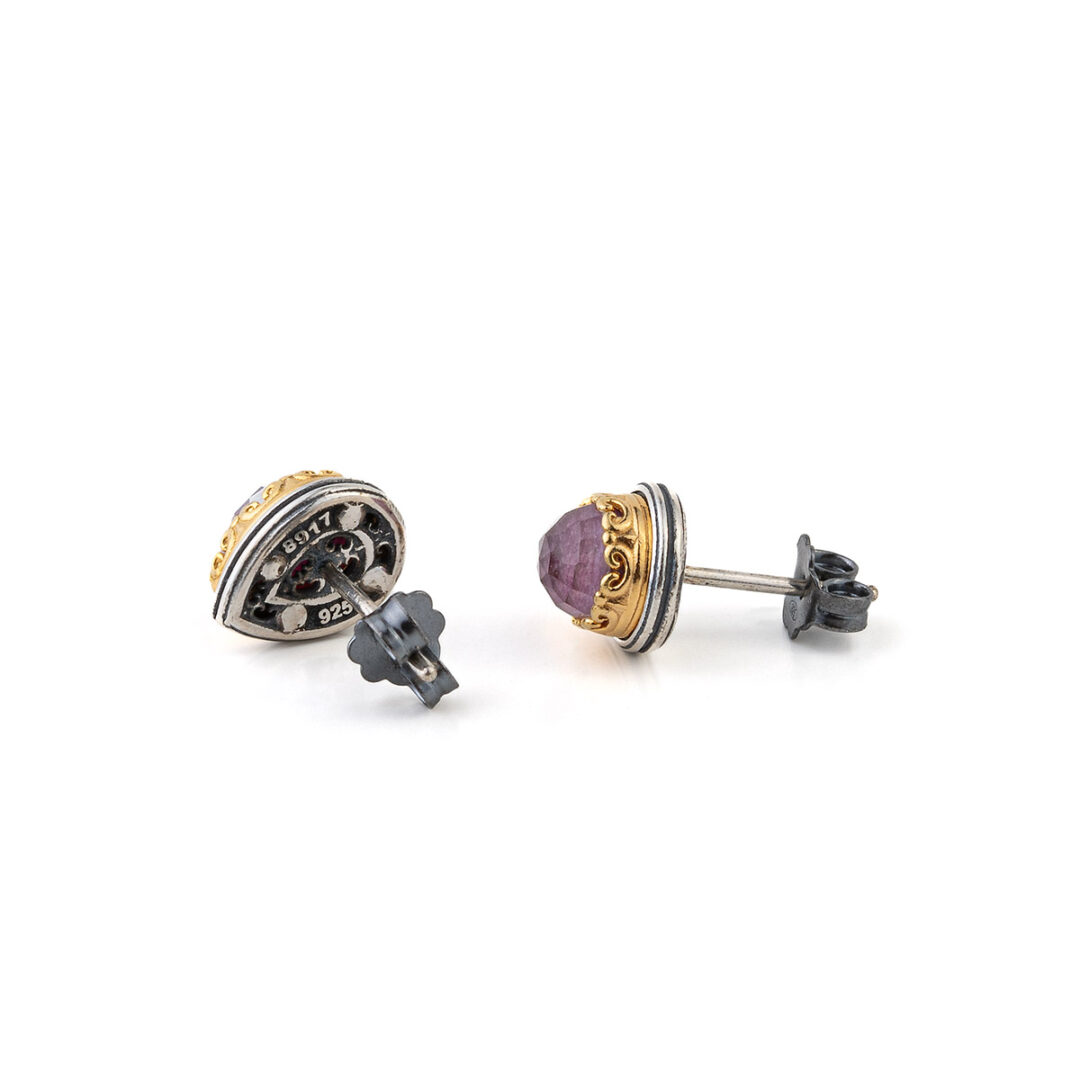 Βυζαντινά σκουλαρίκια καρφωτά με doublet πέτρα Ρουμπίνι.