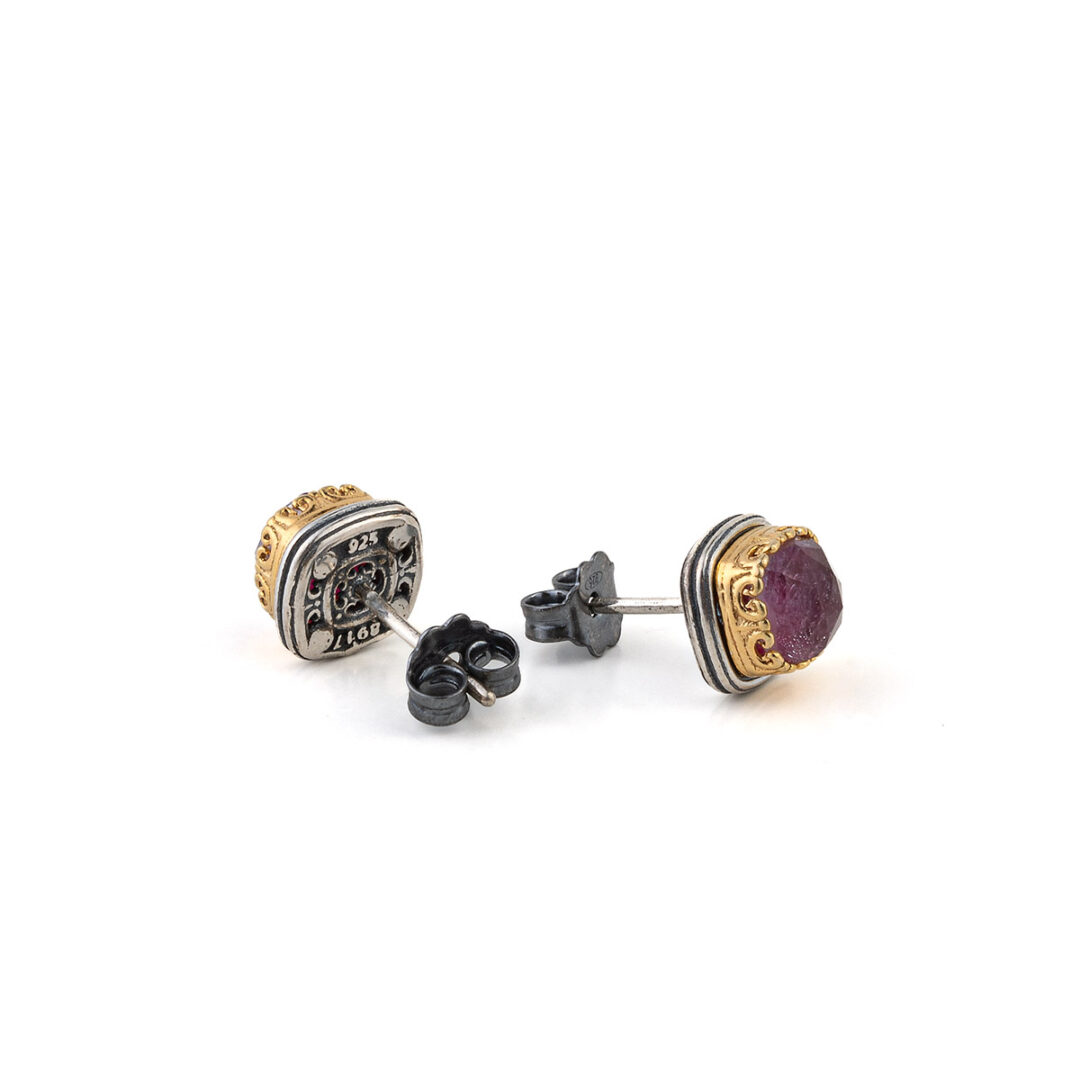 Βυζαντινά καρφωτά σκουλαρίκια με doublet πέτρα ρουμπίνι.