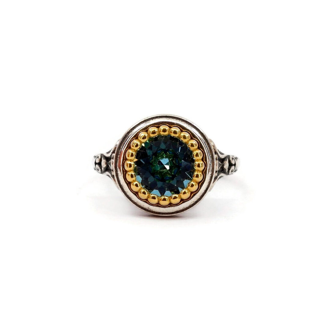 Byzantine Flower Ring with Stones – 925 Sterling Silver and Gold Plated