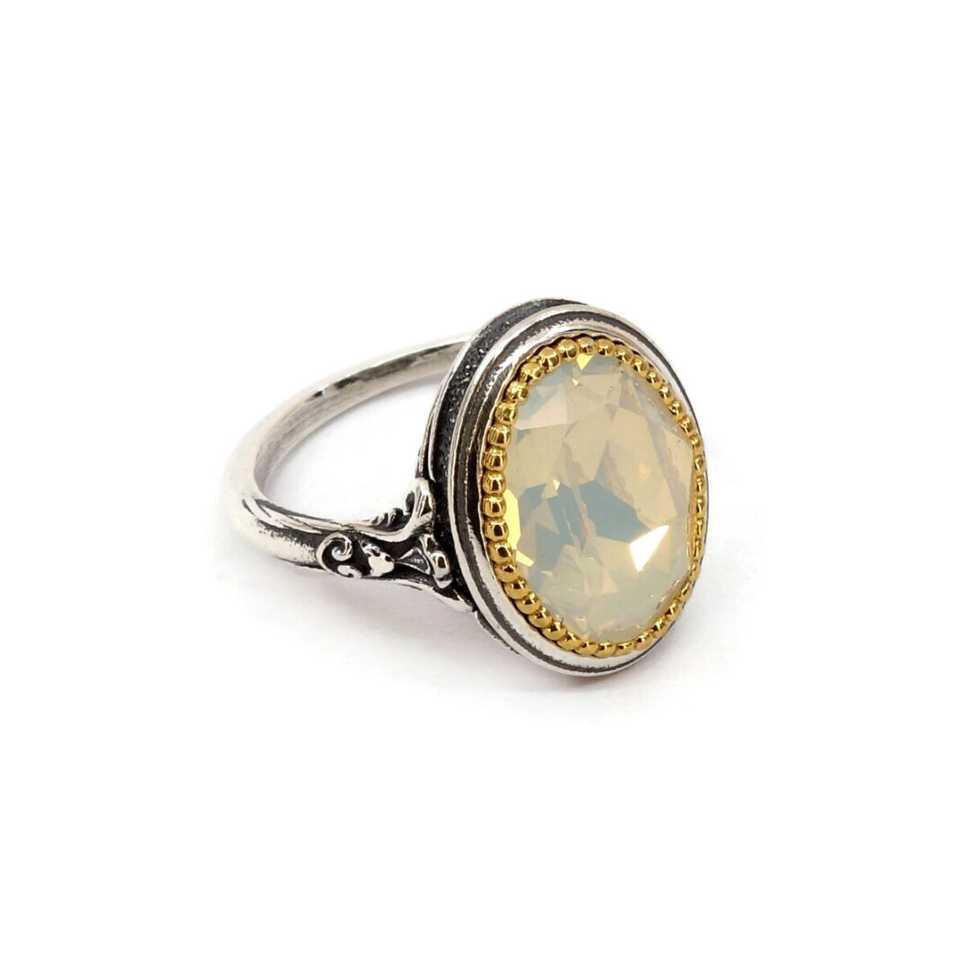 Byzantine ring with white opal swarovski 1cmX1.4cm. Made of 925⁰ sterling silver with gold plated part.