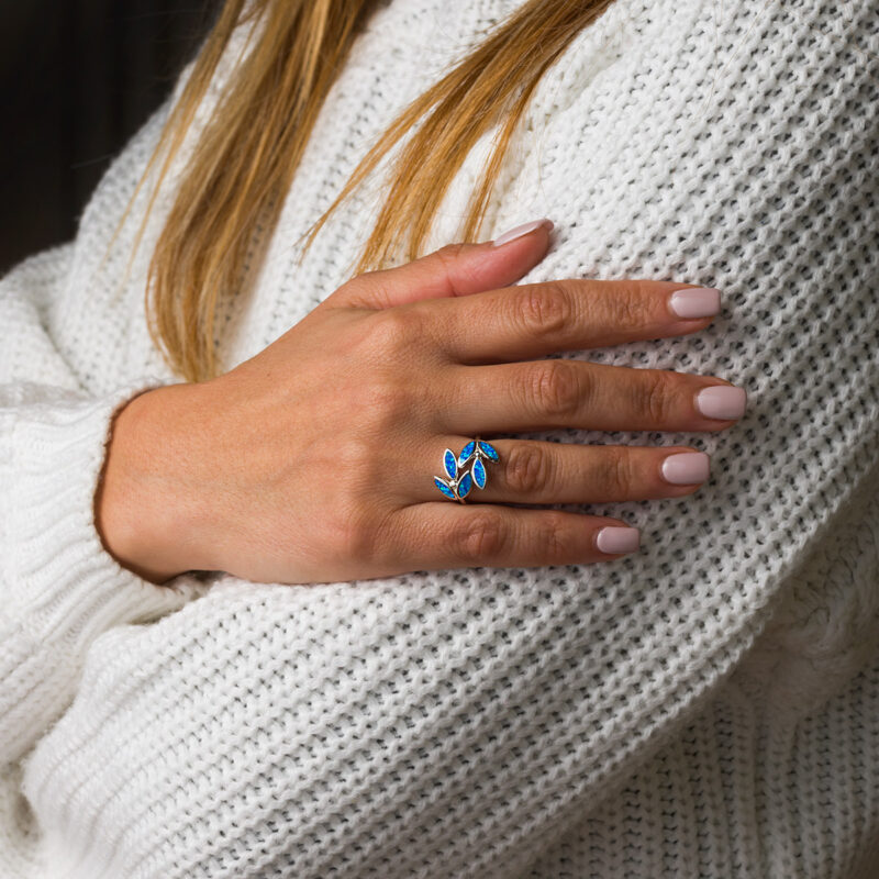 Δαχτυλίδι Φύλλα Ελιάς- Ασημένιο Οπάλ 925