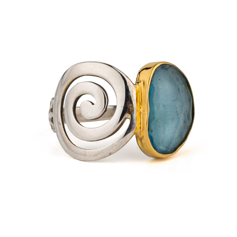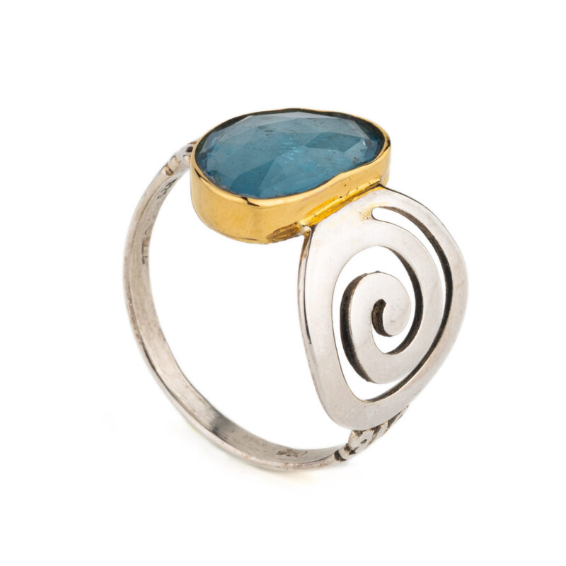 Δαχτυλίδι με Σπείρα και Aqua Marine – Χρυσό 18Κ και ασήμι 925