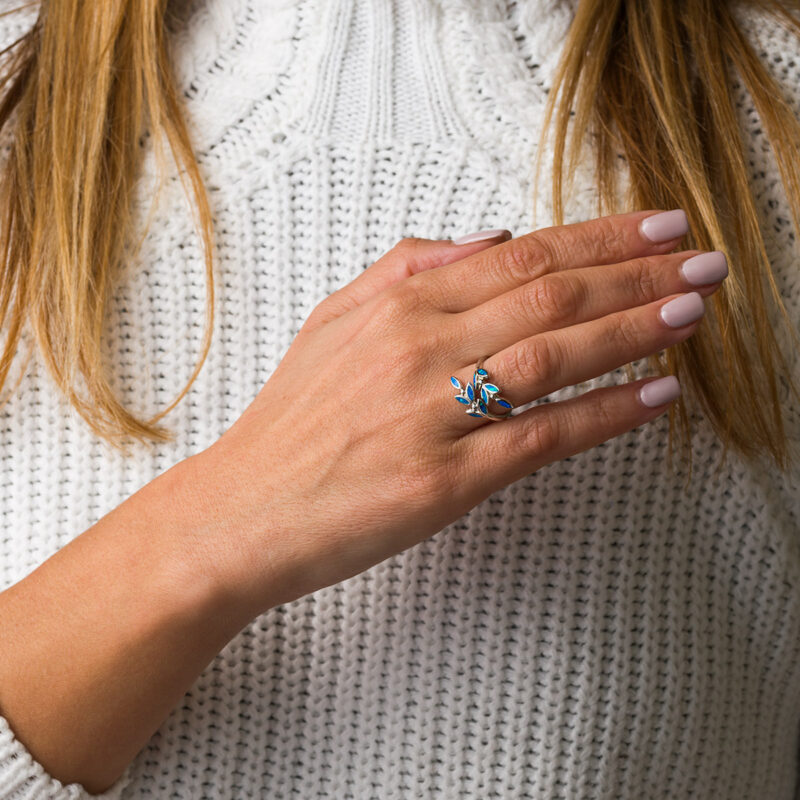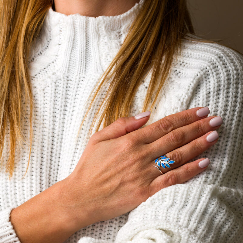 Δαχτυλίδι Φύλλο με Μπλε Οπάλ – Ασήμι 925