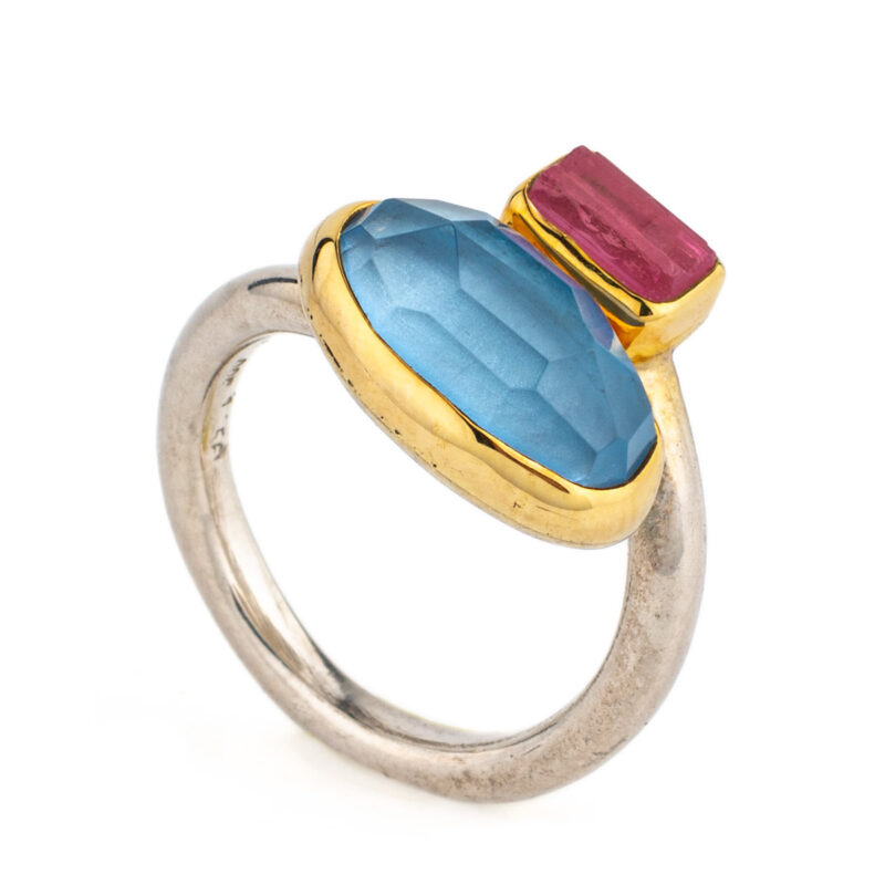 Δαχτυλίδι Τουρμαλίνη και Aqua Marine – Χρυσό 18Κ και Ασήμι 925