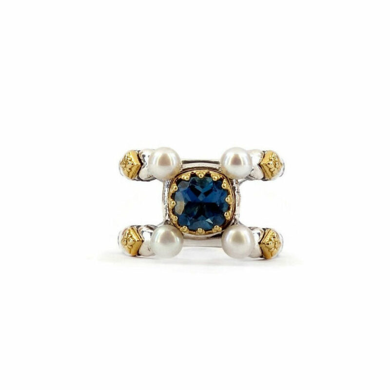 Byzantine Ring with London Blue Stone – 925 Sterling Silver Gold Plated