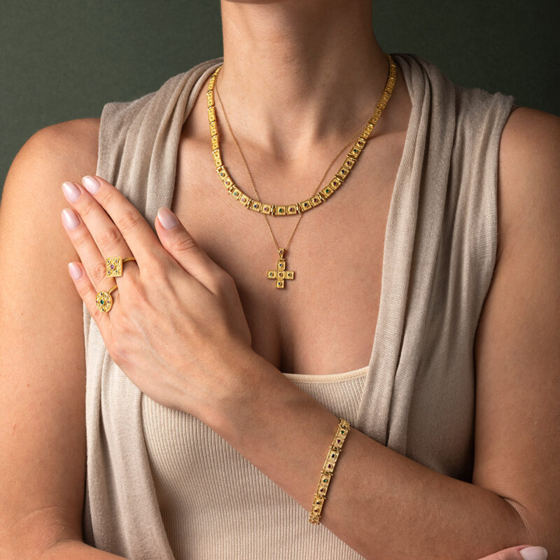 Byzantine Circles Ring with Stones – 925 Sterling Silver and Gold Plated