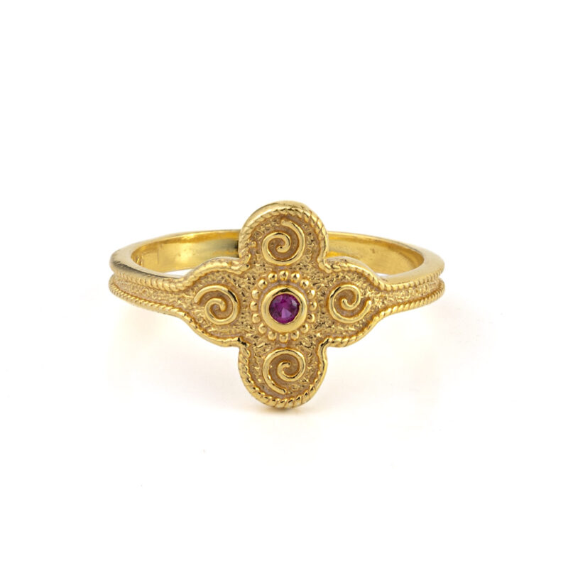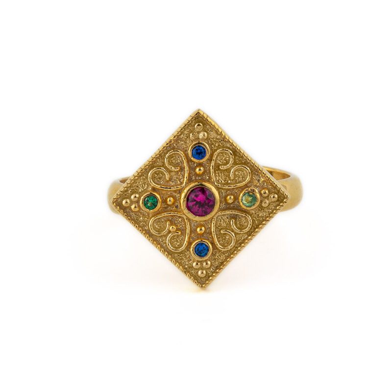 Byzantine Flower Ring with Stone – Gold Plated 925 Sterling Silver