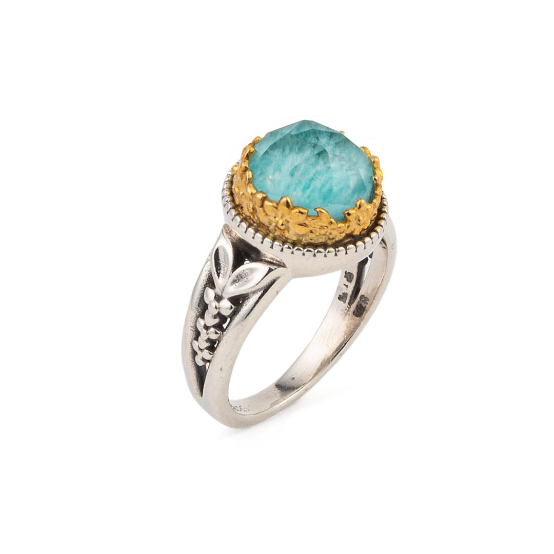 Δαχτυλίδι Σπείρα με Αμαζονίτη – 18Κ Χρυσό και Ασήμι 925