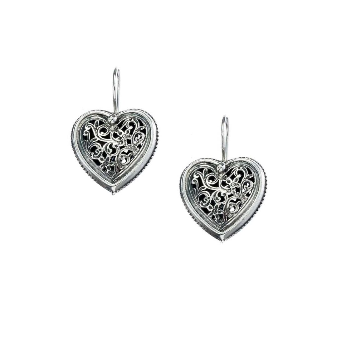 Σκουλαρίκια καρδιές από ασήμι 925, διακοσμημένα με φιλιγκράν, χειροποίητα με προσοχή στη λεπτομέρεια.