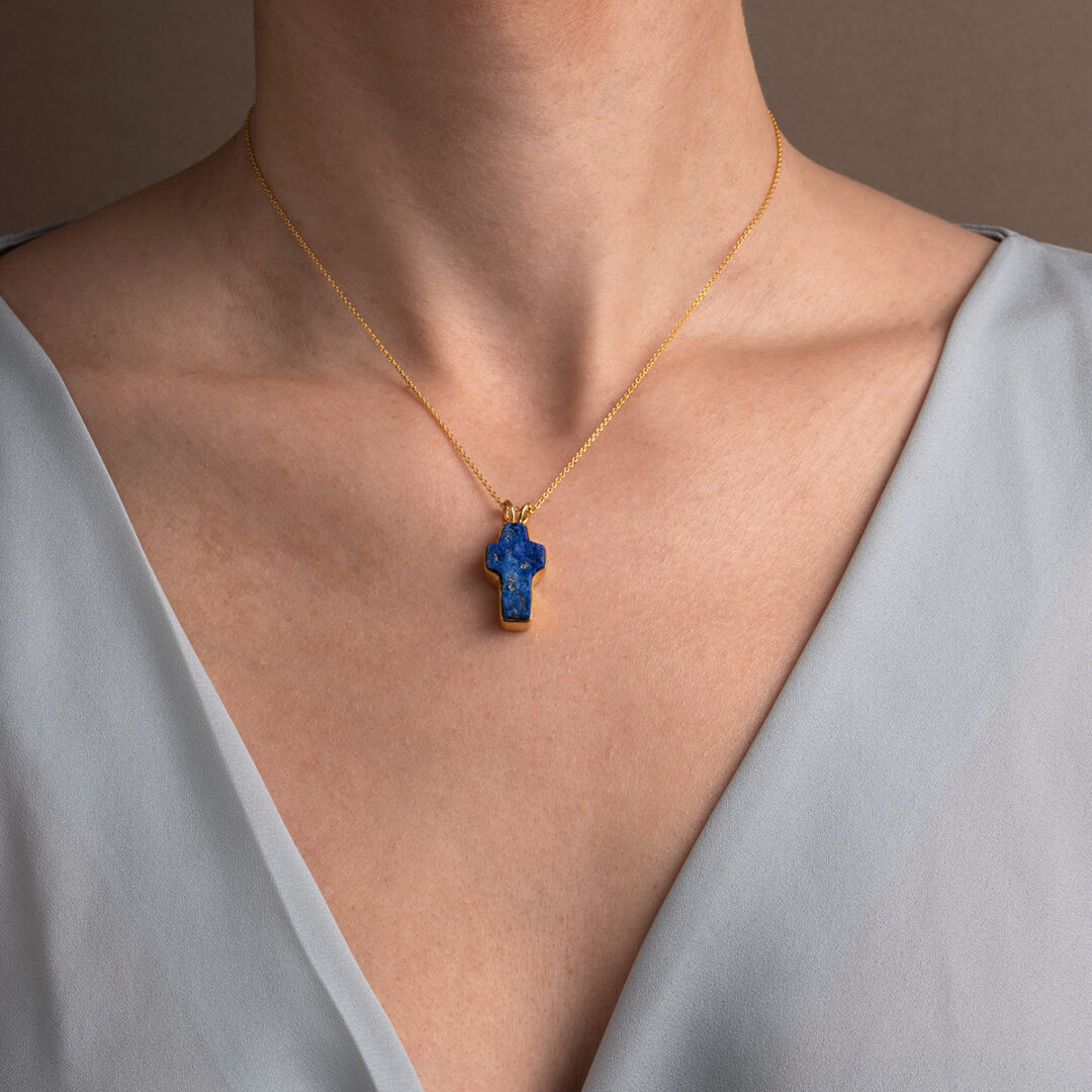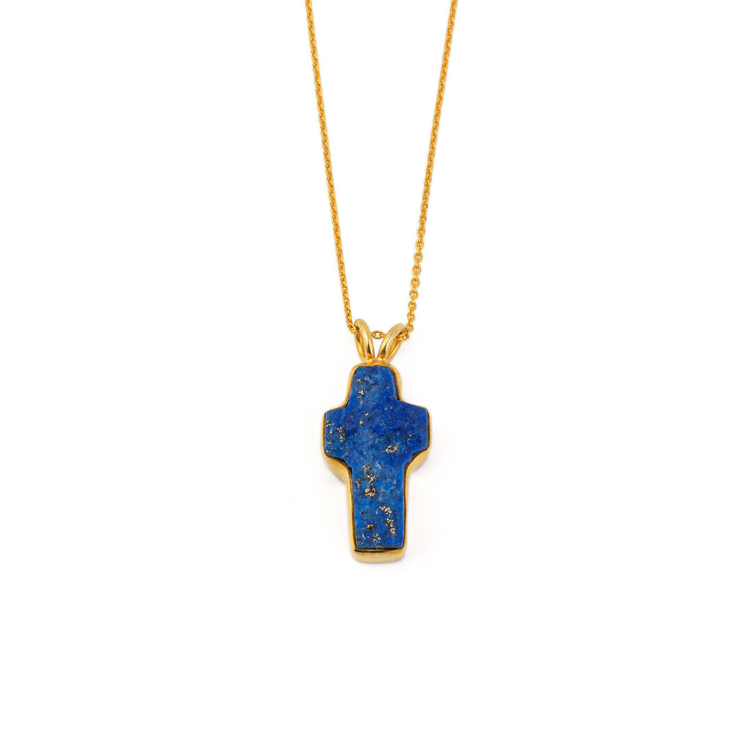 Κολιέ Σταυρός με Λάπις – Επιχρυσωμένο Ασήμι 925