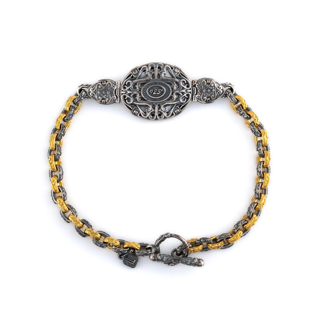 Αυτό το βραχιόλι είναι εμπνευσμένο από τη βυζαντινή ιστορική περίοδο με σεβασμό στην ελληνική παραδοσιακή τέχνη.
