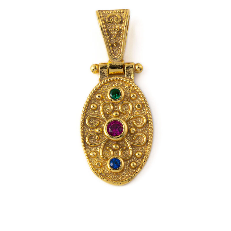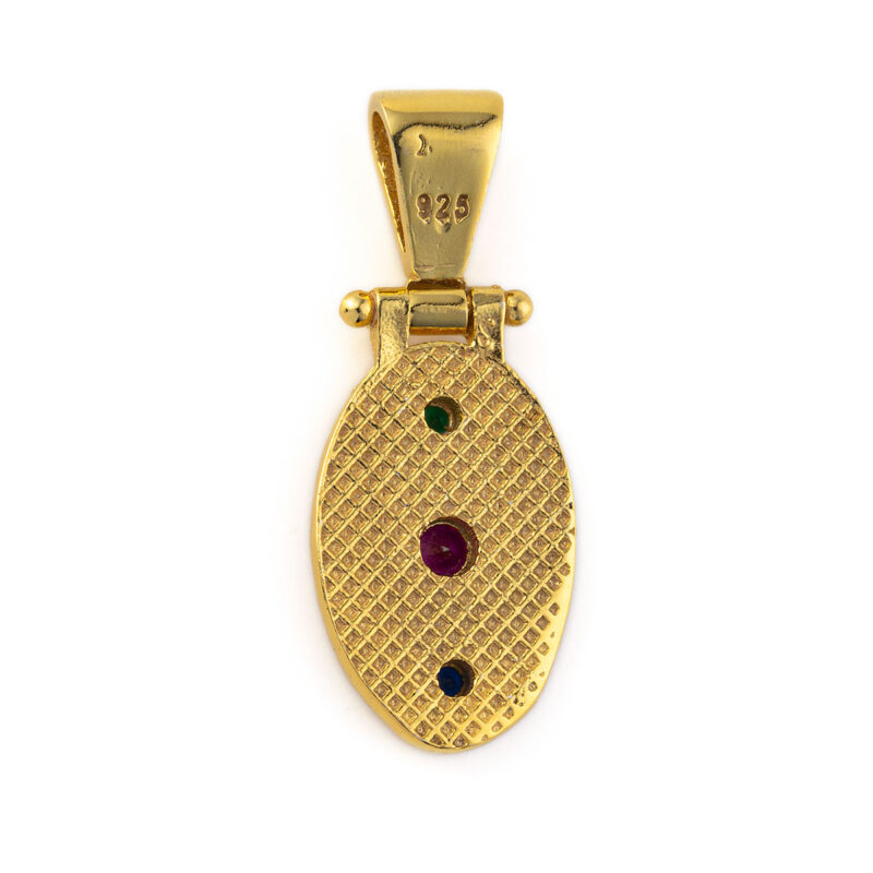 Κατασκευασμένο από ασήμι 925° και επιχρυσωμένο ασήμι.