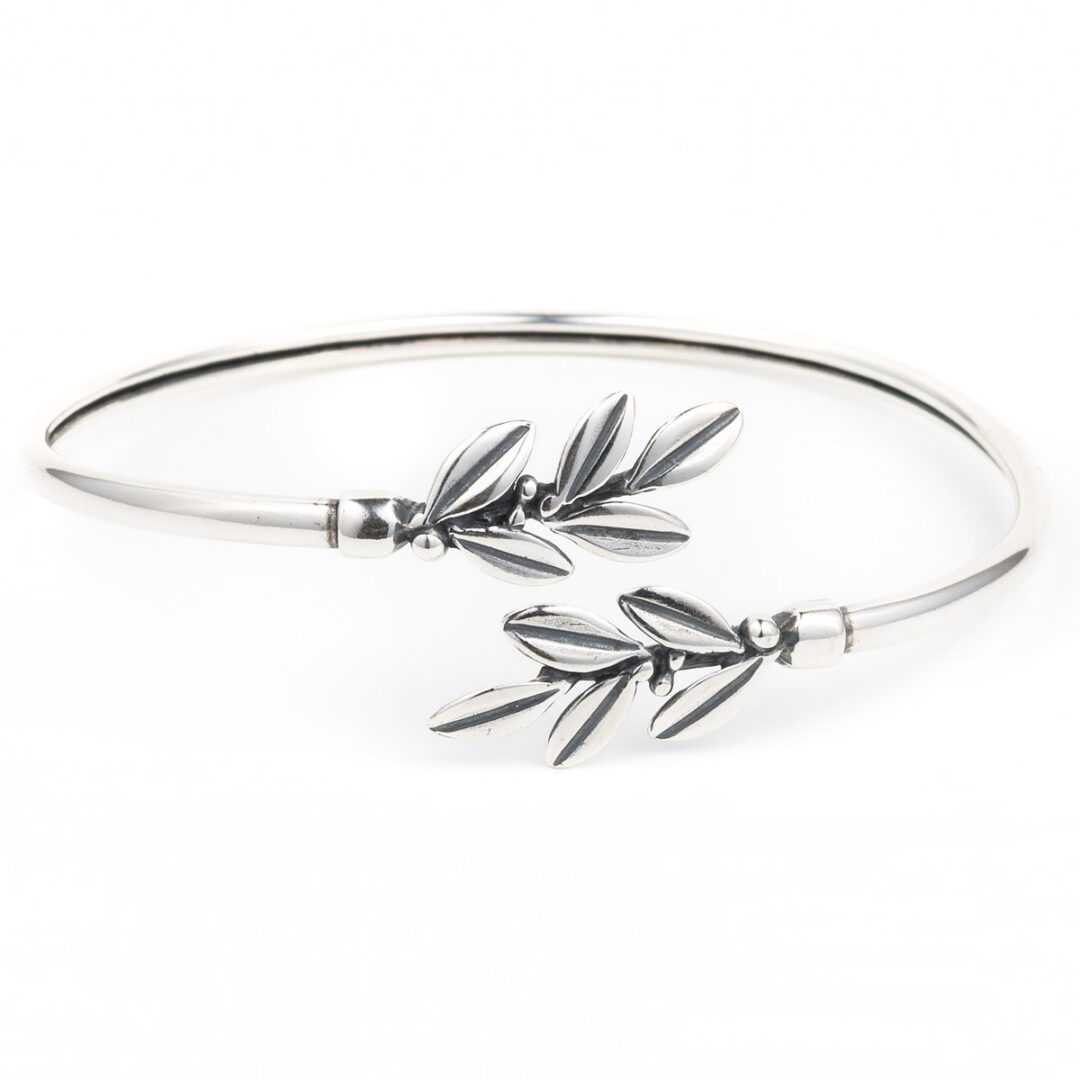 Olive Leaves Hinge Bracelet – 925 Sterling Silver and Gold Plated