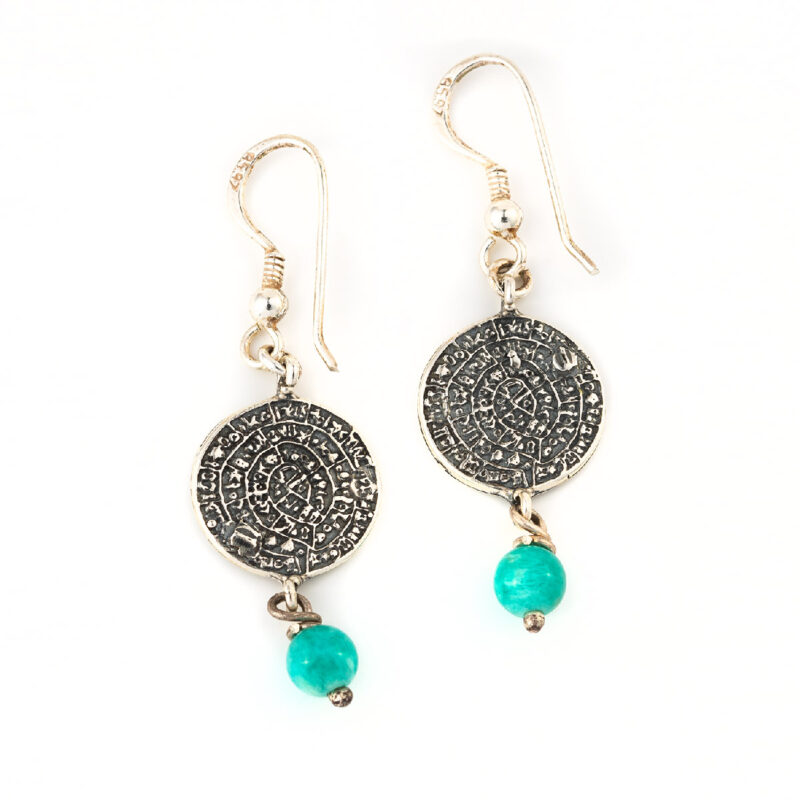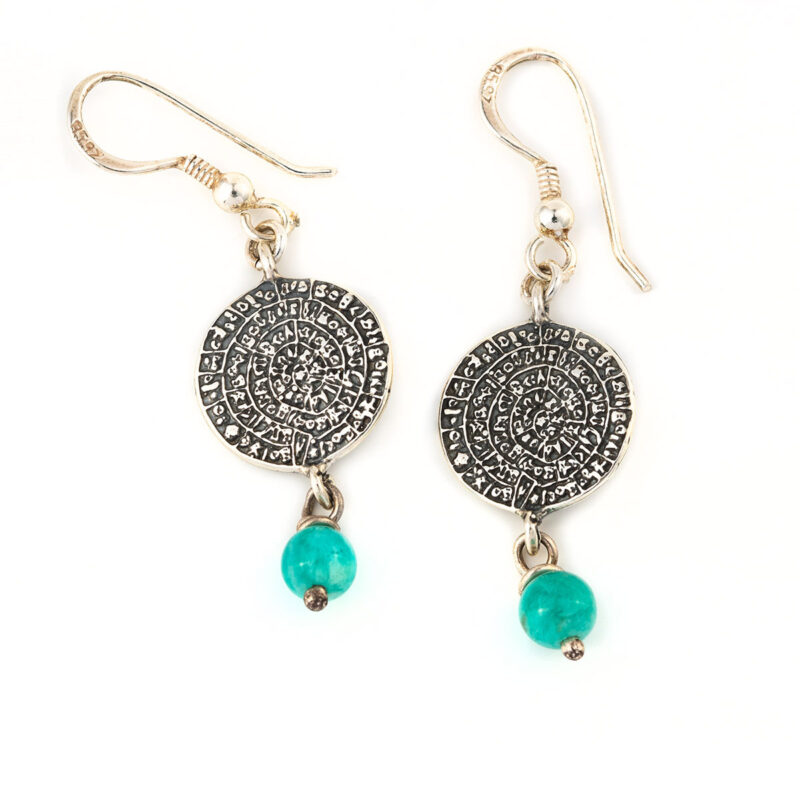 Αυτό το ζευγάρι σκουλαρίκια αναπαριστά το δίσκο της Φαιστού.