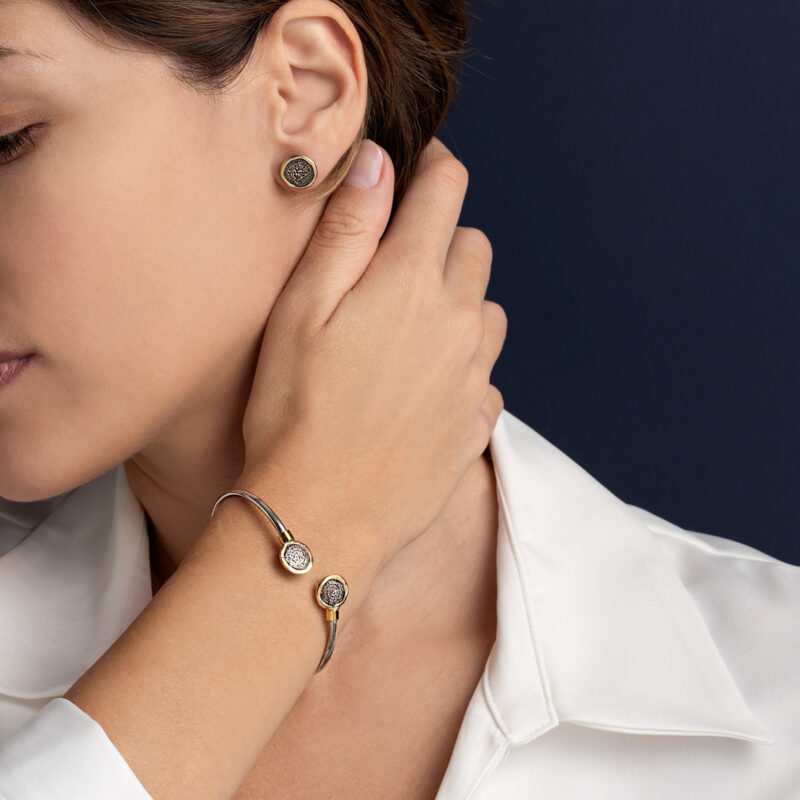 Σκουλαρίκια Καρφωτά Δίσκος της Φαιστού – Χρυσό 14Κ και Ασήμι 925