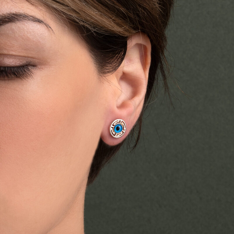 Στρογγυλά Πολύχρωμα Καρφωτά Σκουλαρίκια – Ασήμι 925
