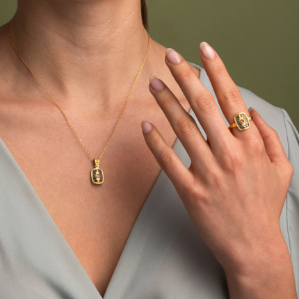 Byzantine Ring with Stones – 925 Sterling Silver and Gold Plated