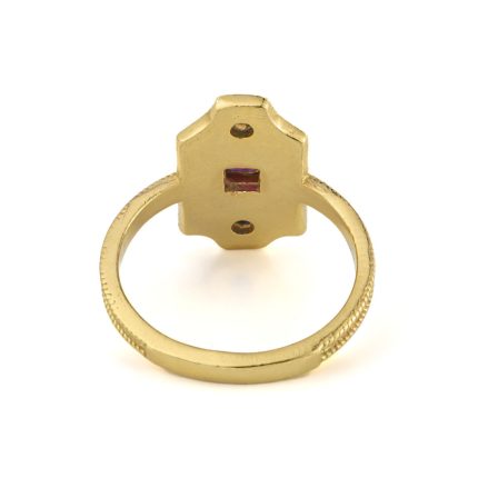 Byzantine Square Ring with Red Zircon – Sterling Silver and 18K Gold Plating