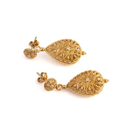 Byzantine Circle Cross Pendant in 925 Sterling Silver Gold Plated with Zircon