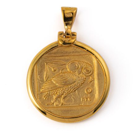 Greek Goddess Athena Coin Pendant – 925 Sterling Silver Gold Plated