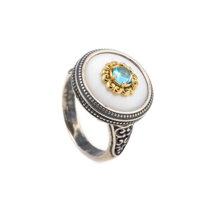 Sterling Silver Gold Plated Round Byzantine Ring with Stones