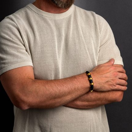 Sterling Silver Bracelet with Greek Key Motif – Genuine Leather