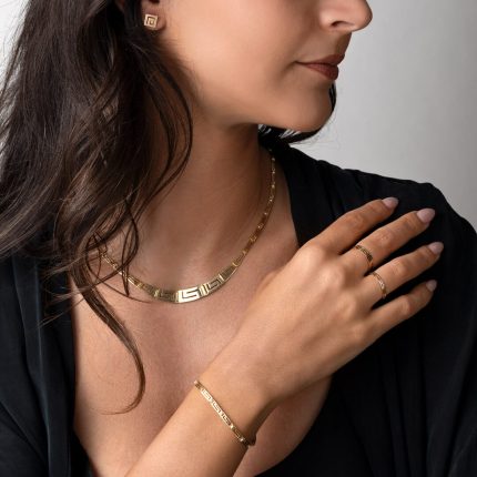 Greek Key Round Hoop Earrings – Sterling Silver & Gold-Plated