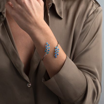Olive Leaf Opal bangle Bracelet – 925 Sterling Silver and Gold Plated