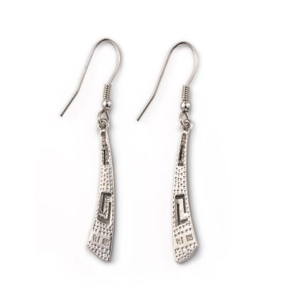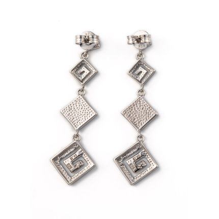 925 Sterling Silver Round Shaped Dangle Earrings with Greek Key